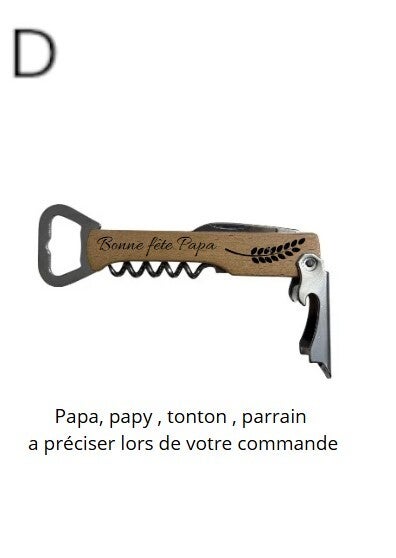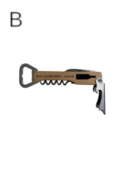 Décapsuleur tire-bouchon multifonction en bois gravé personnalisé
