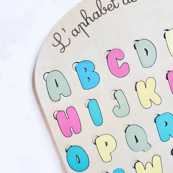 Offrez à votre enfant un jeu éducatif unique avec notre puzzle alphabet personnalisé en bois gravé ! 🌿💛