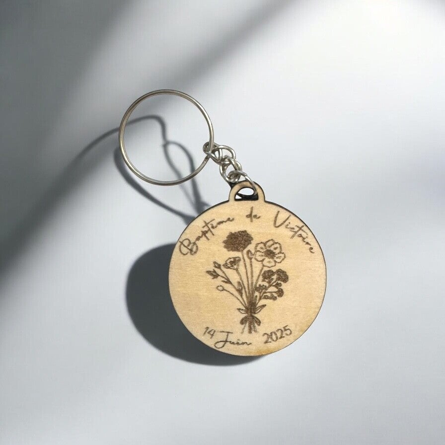 ous cherchez un cadeau unique pour remercier vos invités lors d’un baptême ou d’une communion ? Découvrez notre porte-clés en bois gravé, un souvenir intemporel et raffiné !