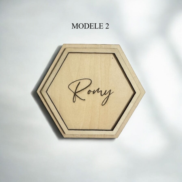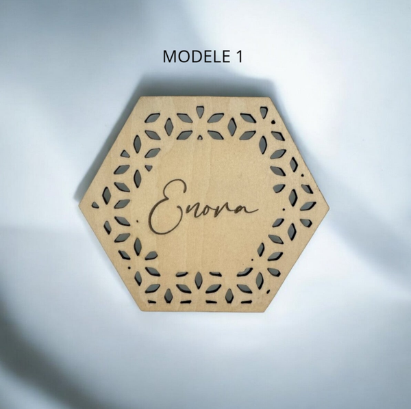 Hexagone bois gravé personnalisé – Décoration murale prénom