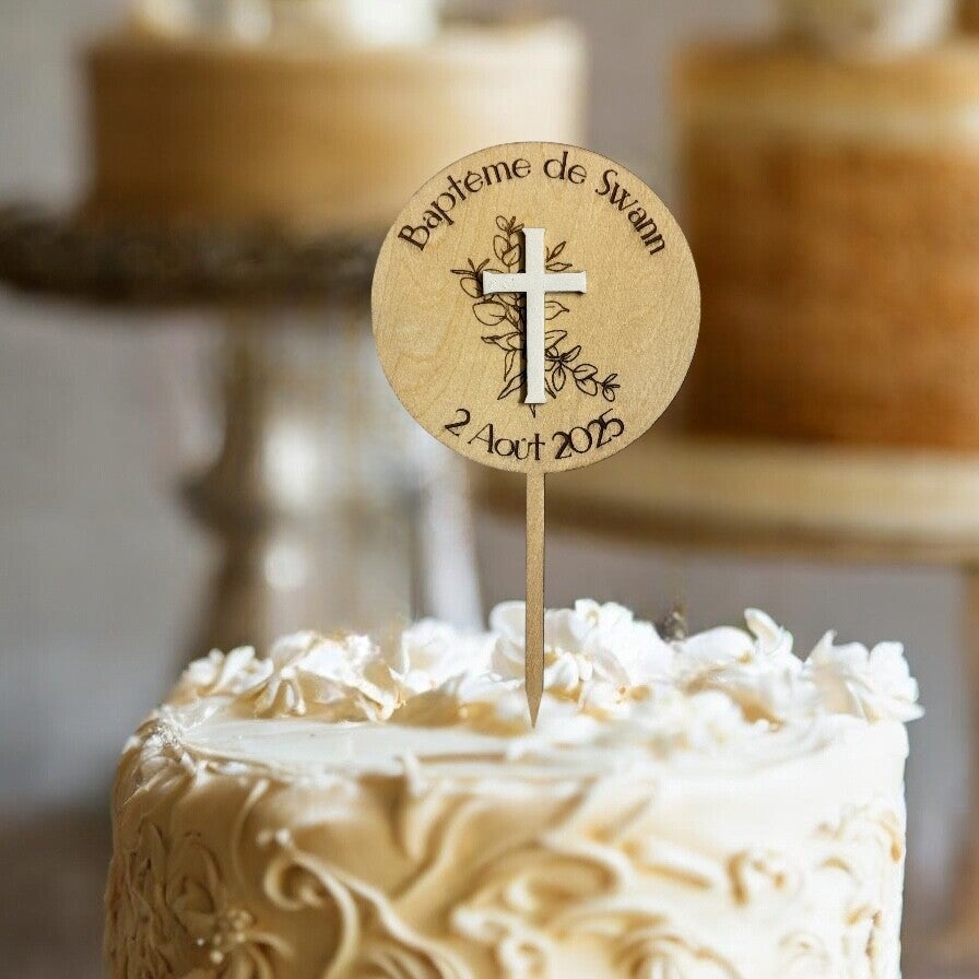 Ajoutez une note raffinée et personnalisée à votre dessert avec notre cake topper en bois gravé. Une pièce d’exception pour sublimer votre table de fête !