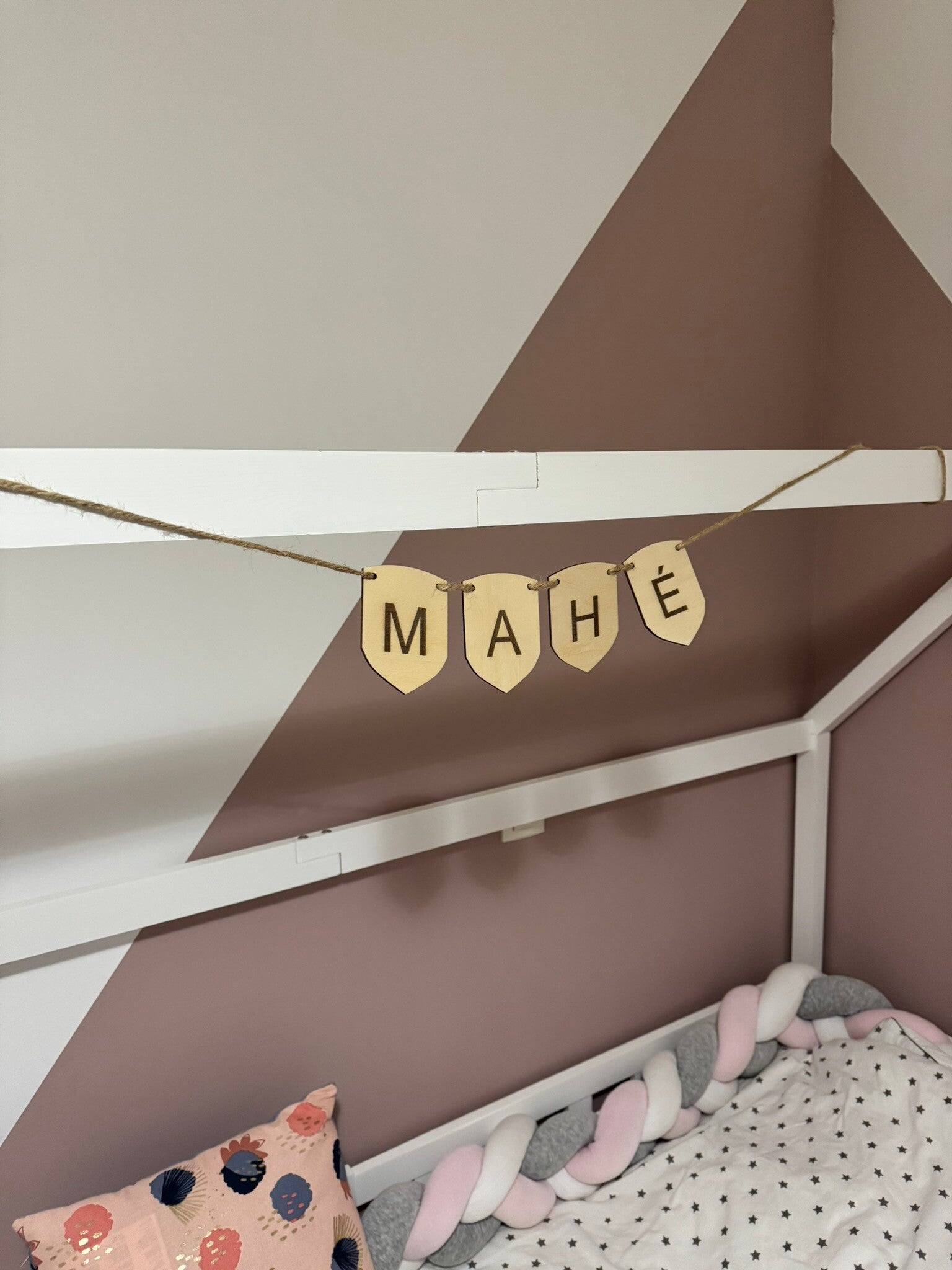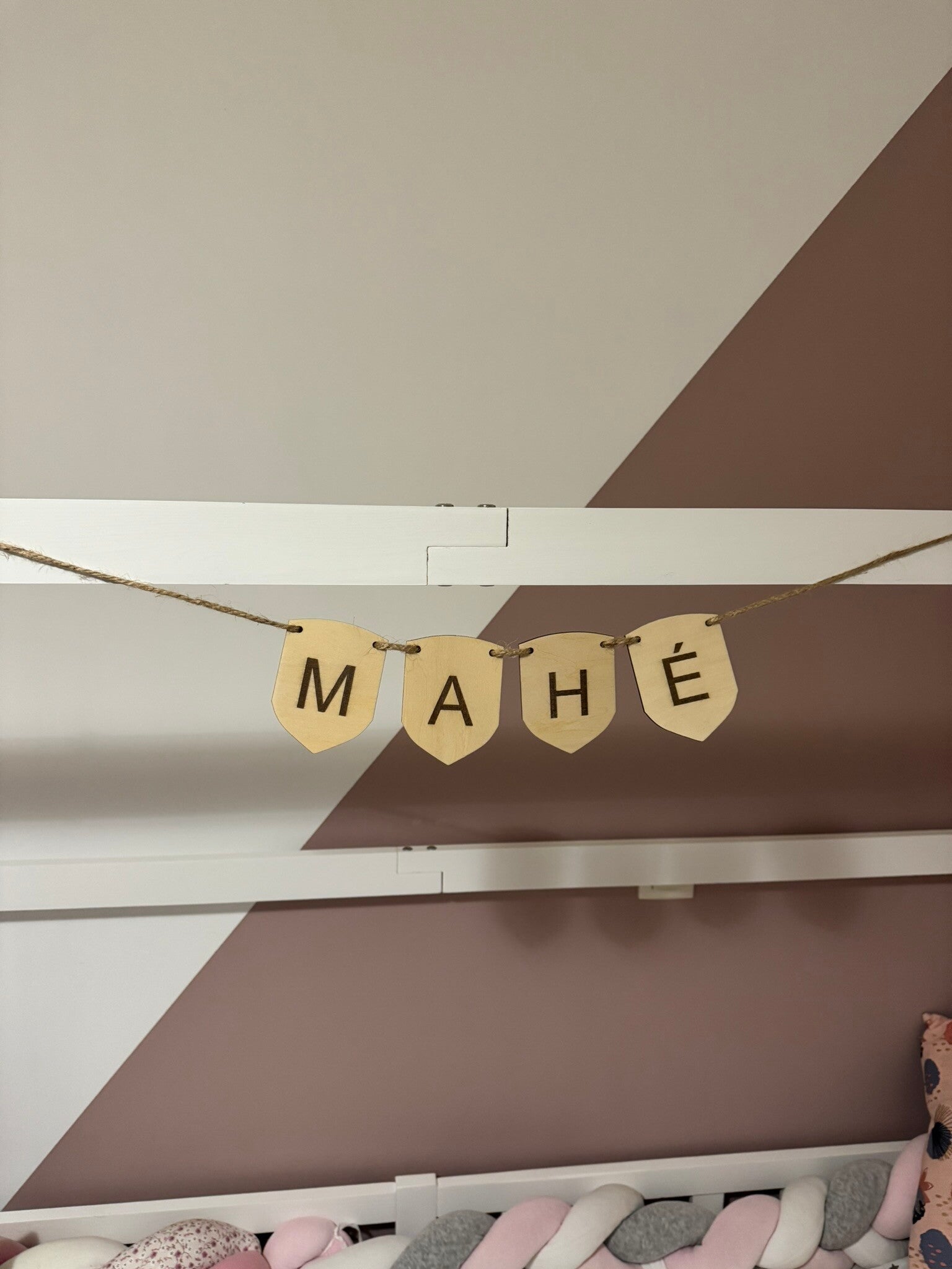 Ajoutez une touche médiévale et élégante à la chambre de votre enfant avec ce fanion prénom en bois en forme de blason ⚔️. Inspiré des écussons des chevaliers, il est idéal pour une déco originale et personnalisée ✨. Chaque fanion est gravé à la main, pour une finition soignée et une touche 100% artisanale.