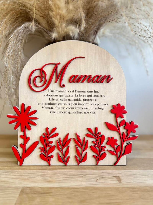 - Détails floraux et texte “Maman” personnalisables (15 coloris au choix)
