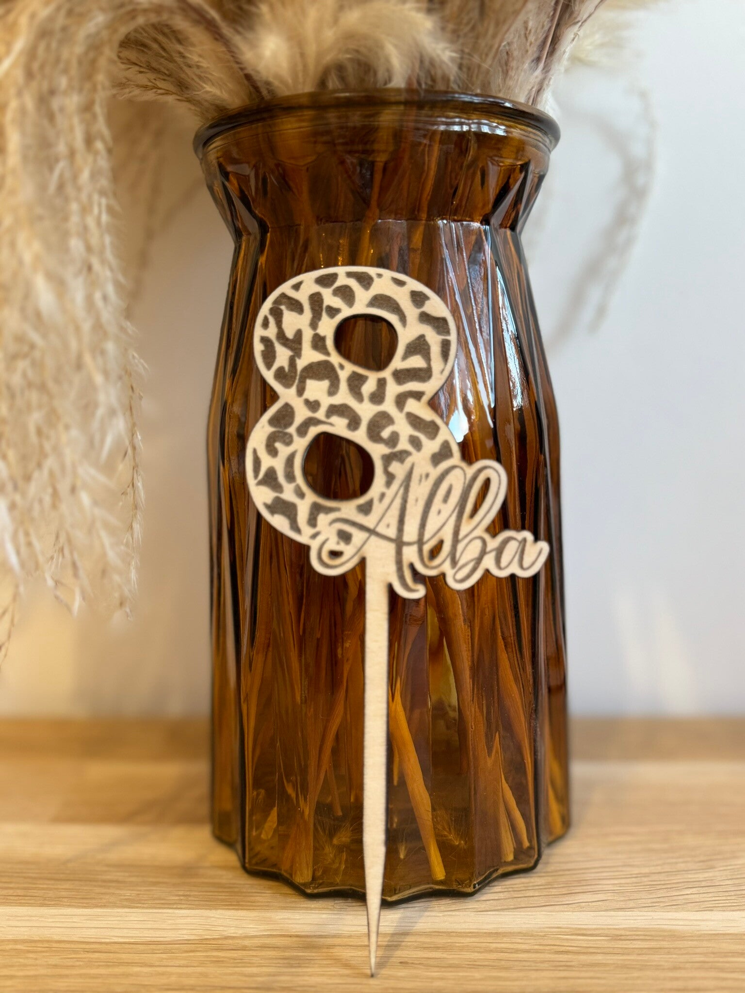 Un anniversaire au style sauvage et chic ! Ce cake topper au motif léopard ajouré est la touche glamour parfaite pour une fête pleine de caractère. Gravé avec soin dans du bois naturel, il est personnalisable avec le prénom de l’enfant et le chiffre d’âge. Ce modèle associe tendance et douceur avec un rendu raffiné, idéal pour un thème animalier, jungle ou simplement une déco moderne et élégante.