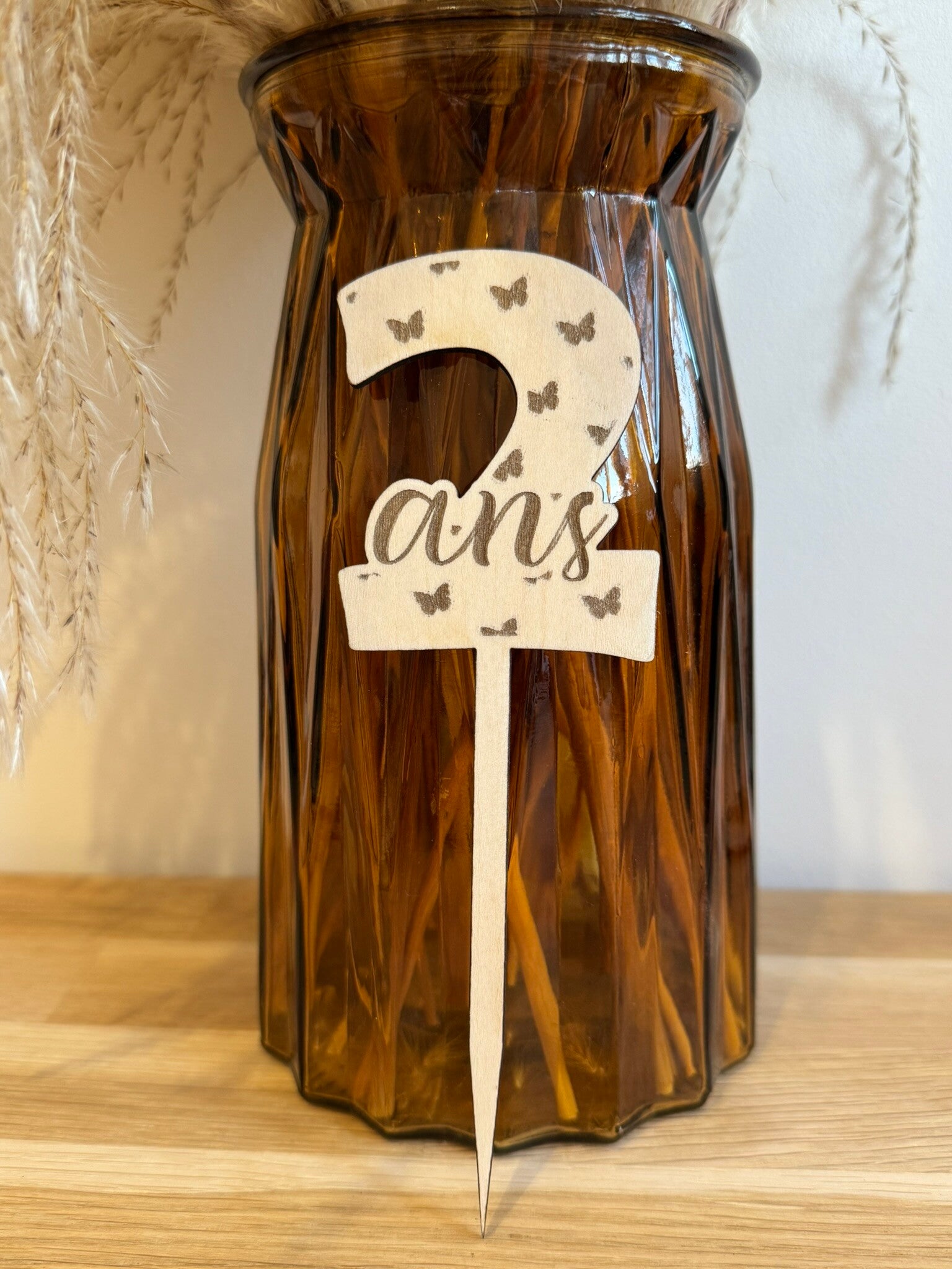 Un vent de légèreté pour un anniversaire tout en poésie ! Ce cake topper délicatement ajouré de petits papillons est la touche parfaite pour sublimer un gâteau d’anniversaire. Personnalisable avec le chiffre d’âge et gravé du mot "ans", il s’adapte à tous les thèmes doux, féeriques ou printaniers. Raffiné et léger, il transforme chaque gâteau en un véritable jardin enchanté.