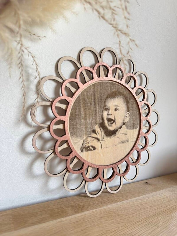 Transformez vos souvenirs les plus précieux en véritables œuvres d’art grâce à notre cadre photo gravé “Souvenir d’Éclat”. Fabriqué avec soin dans notre atelier, ce cadre rond au design rotin ajouré sublime chaque détail de la photo que vous nous confiez. Gravée avec précision sur bois naturel, votre image prend vie dans une ambiance douce et chaleureuse.