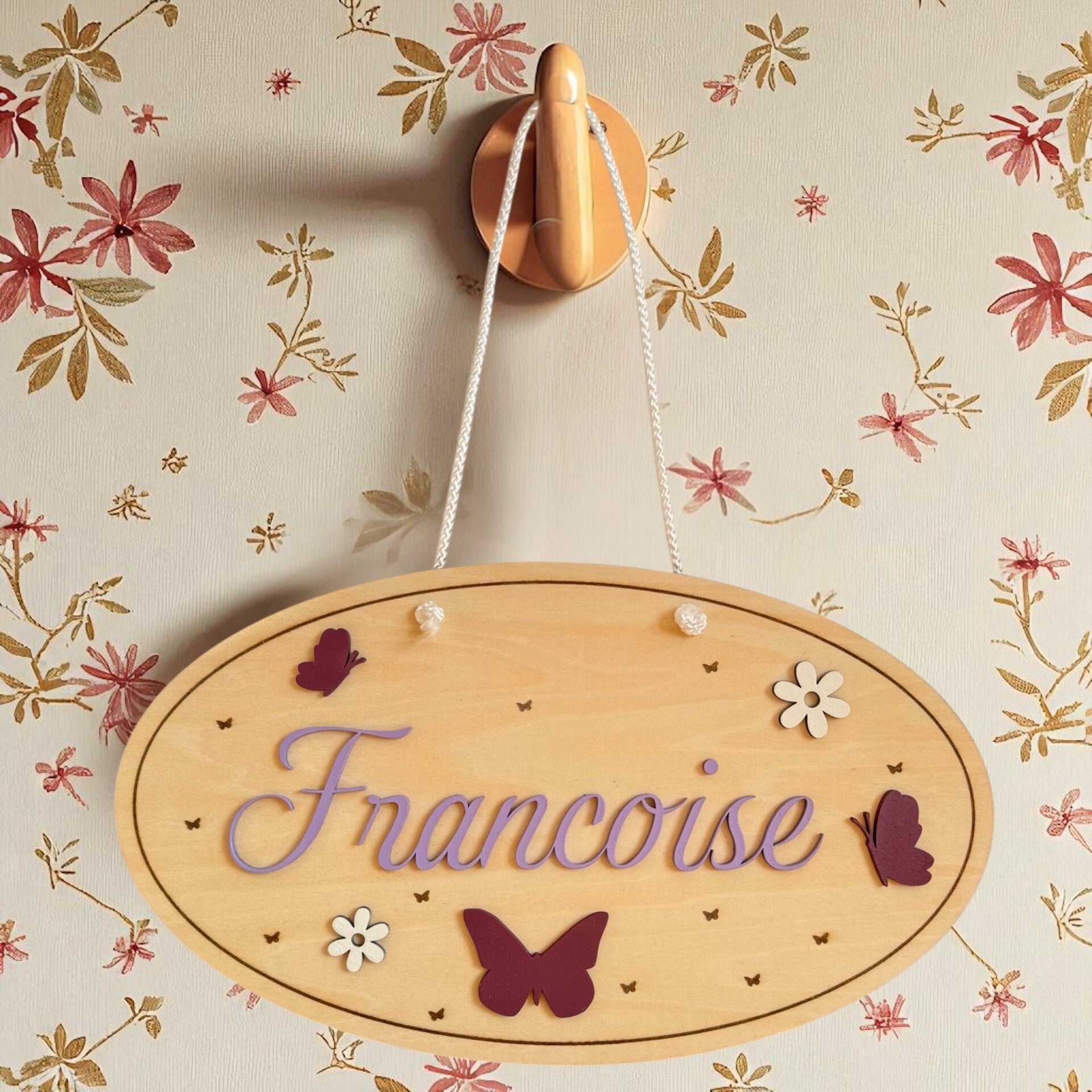 Apportez une touche unique et poétique à votre intérieur avec notre plaque prénom personnalisée en bois sur le thème papillon 🦋.