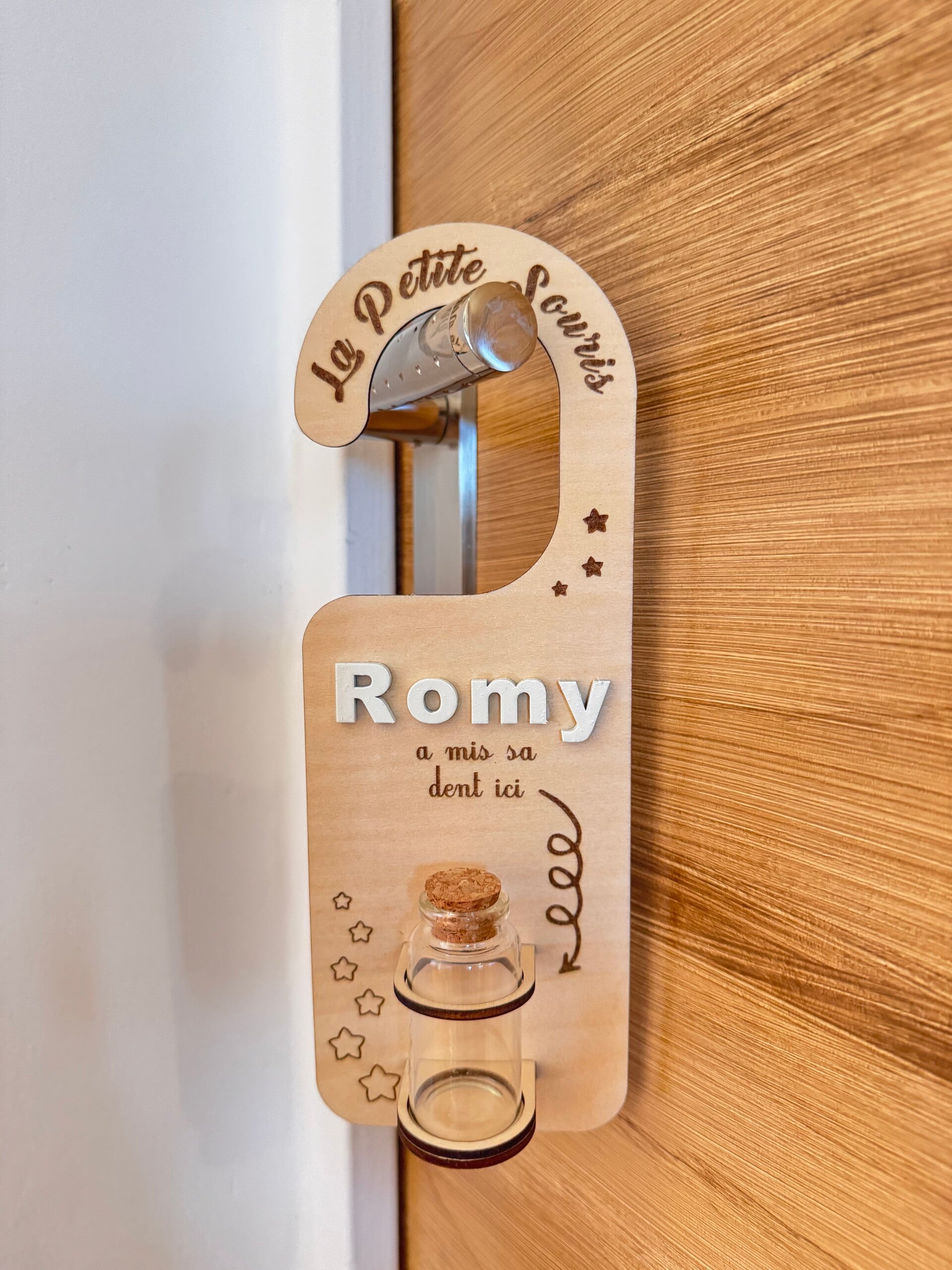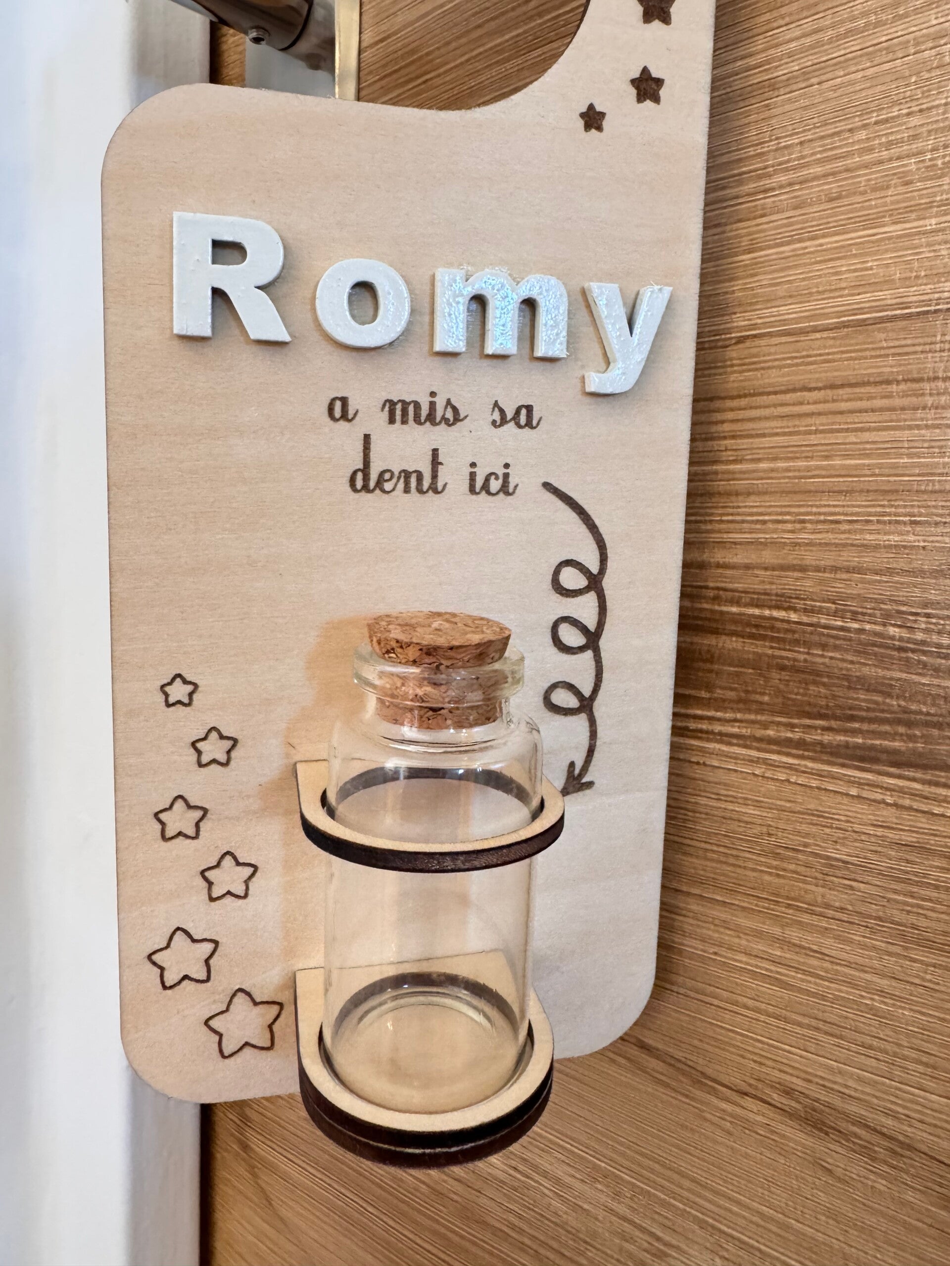 Transformez la perte des premières dents en un moment magique et rassurant avec notre accroche-porte en bois personnalisée.