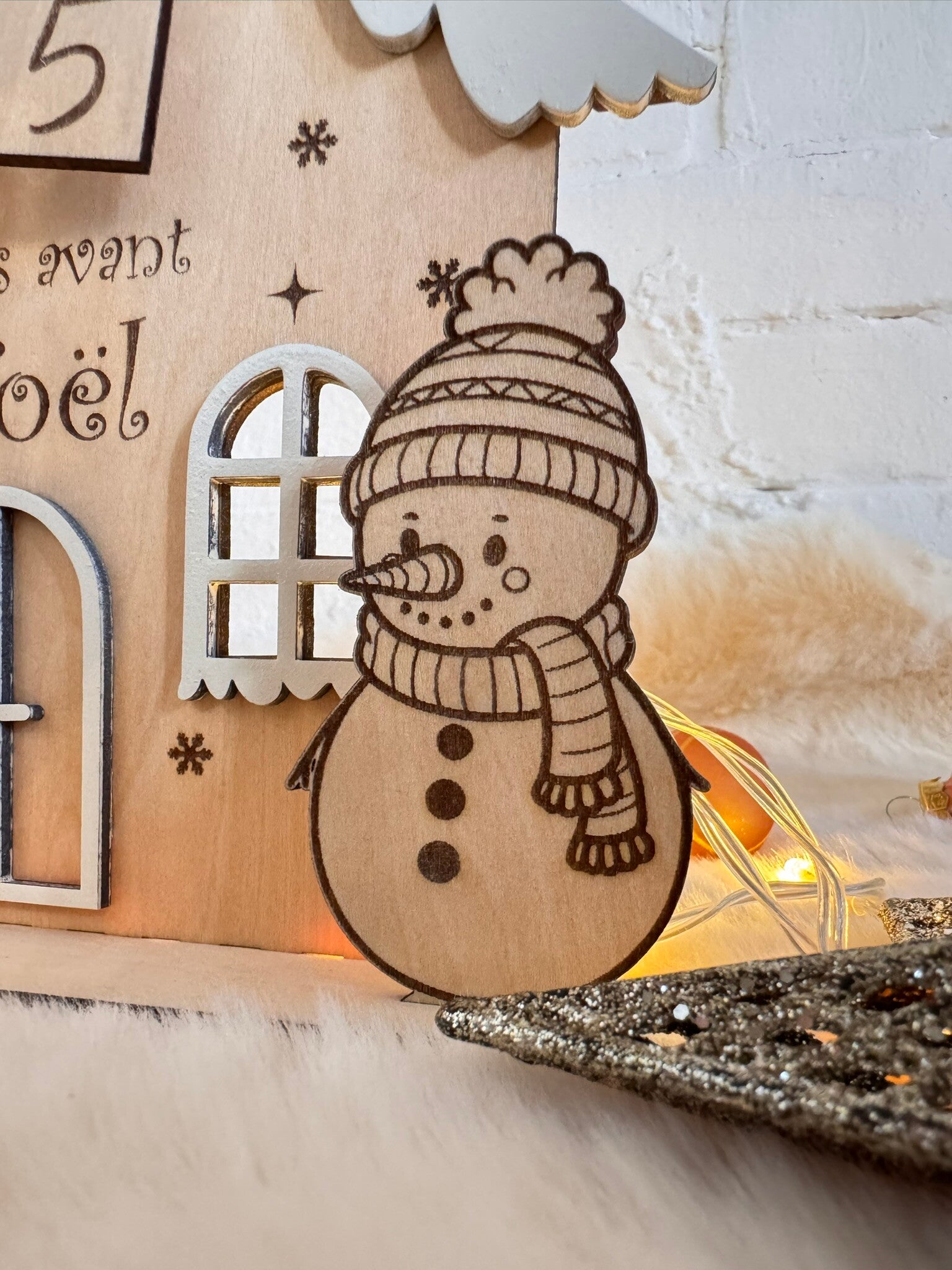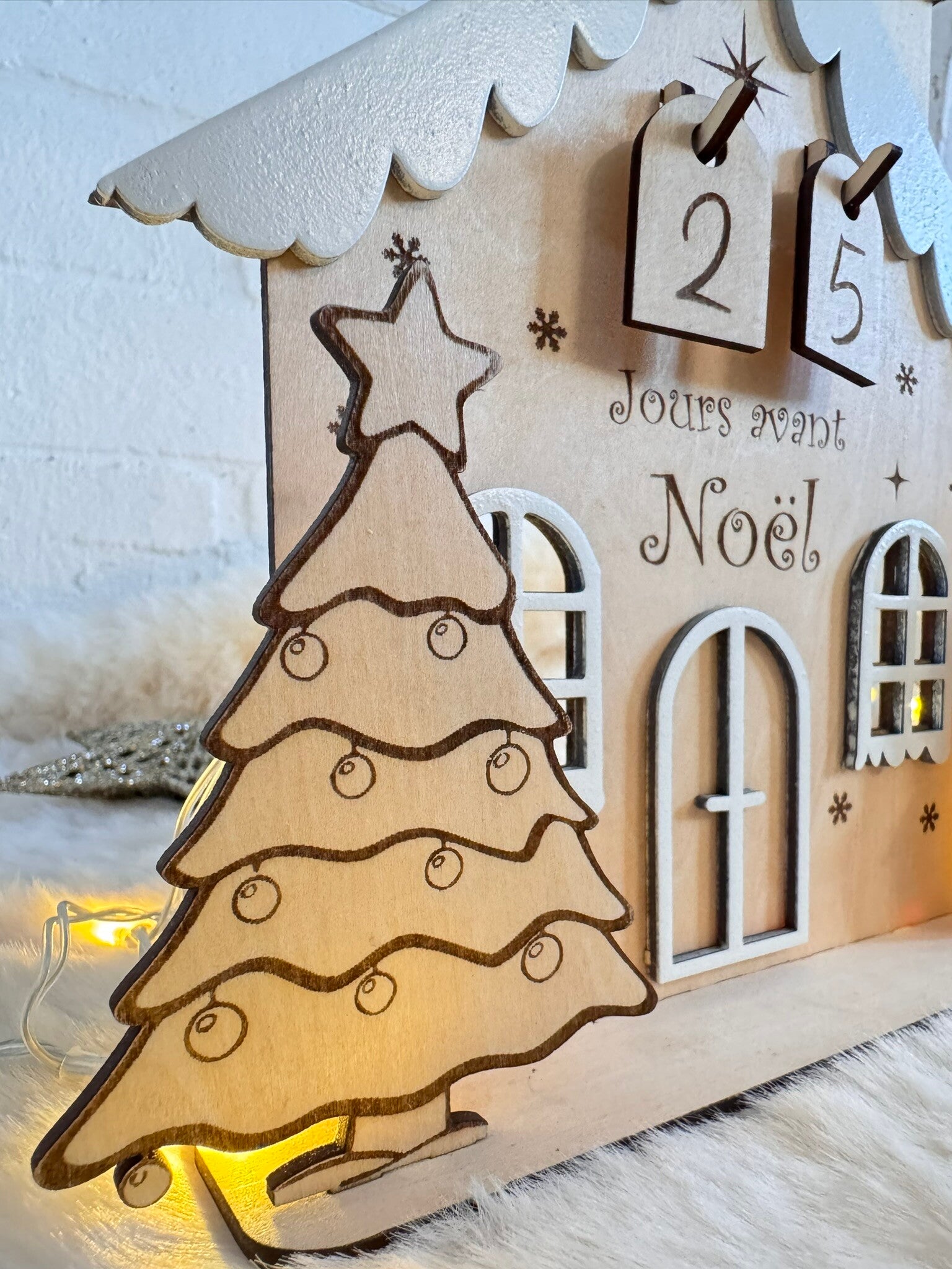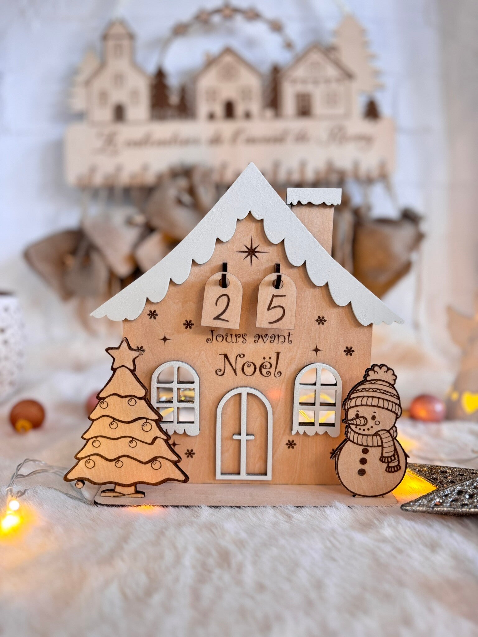 Maison Décompte de Noël en Bois Compteur de Jours Personnalisé