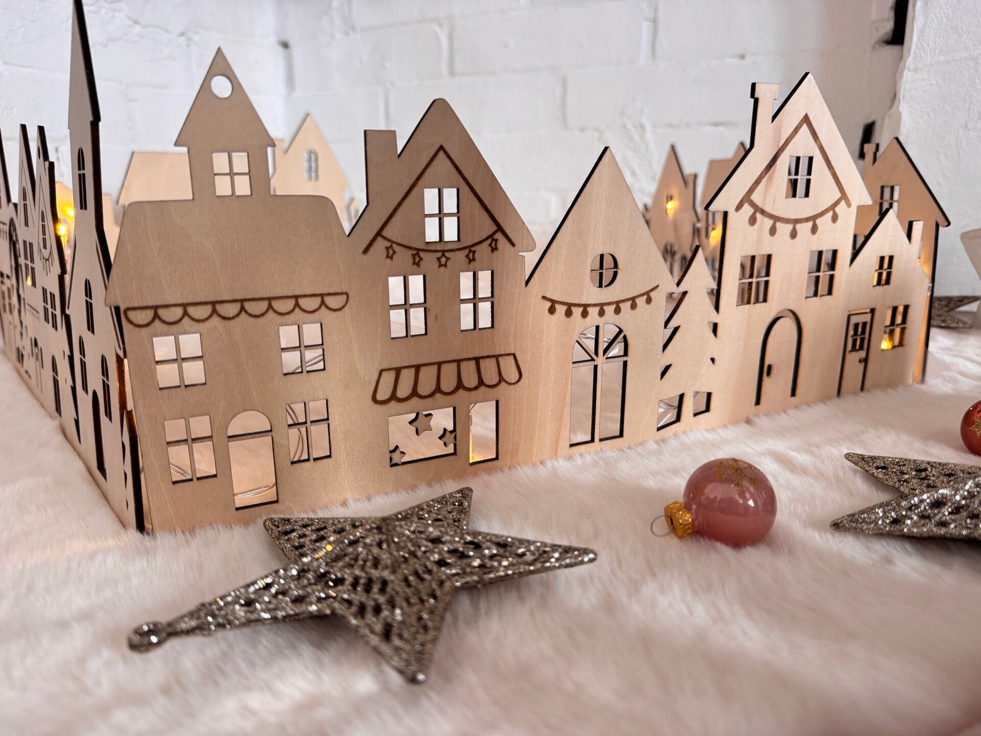 Plongez votre sapin dans la magie de Noël grâce à notre village lumineux en bois .