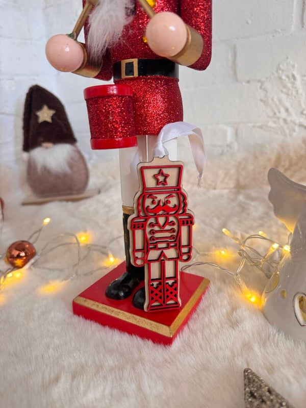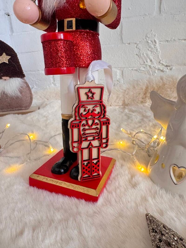 Plongez dans la magie de Noël avec notre suspension Casse-Noisette en bois, une création Gravencia à la fois élégante et intemporelle 🎁