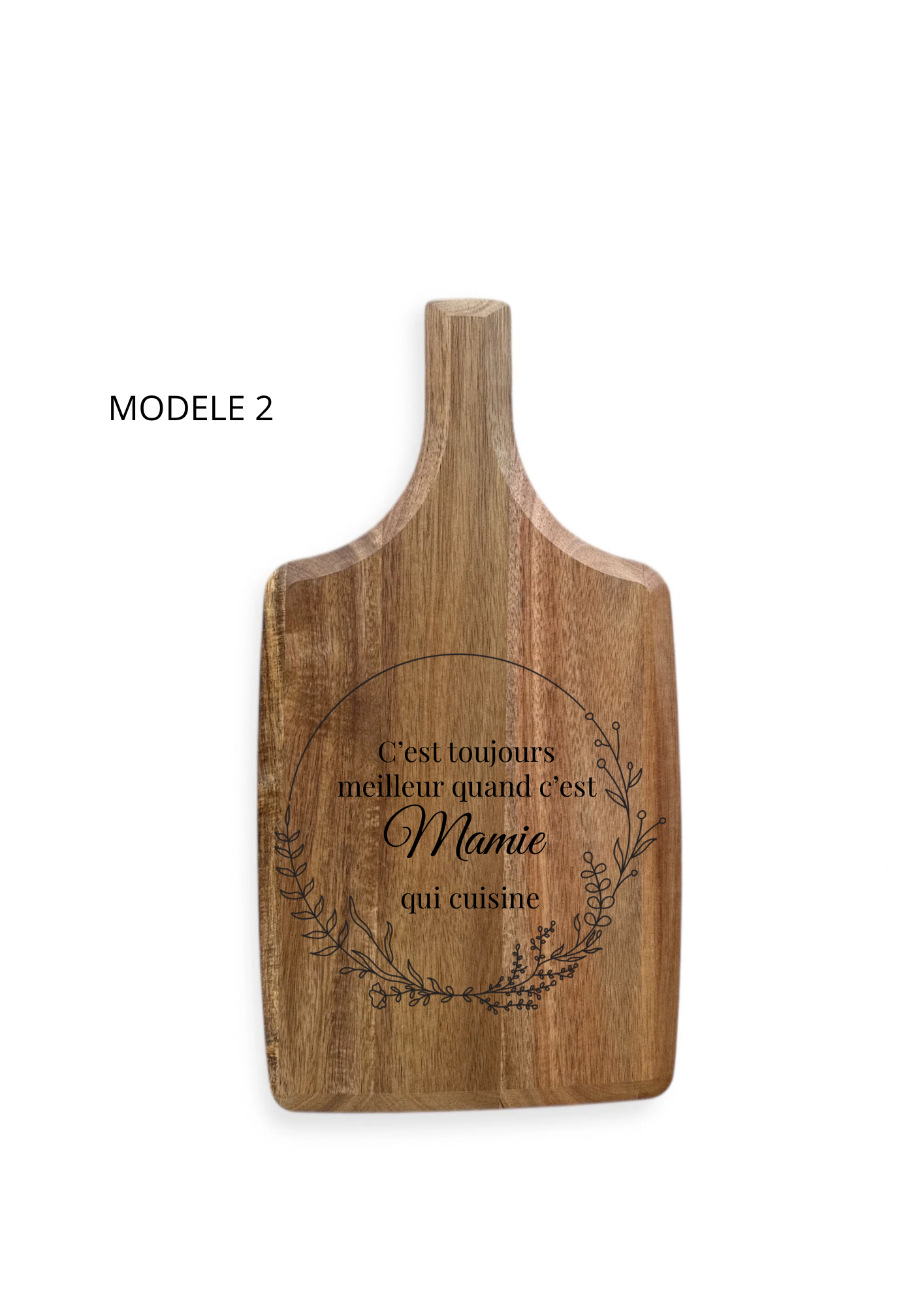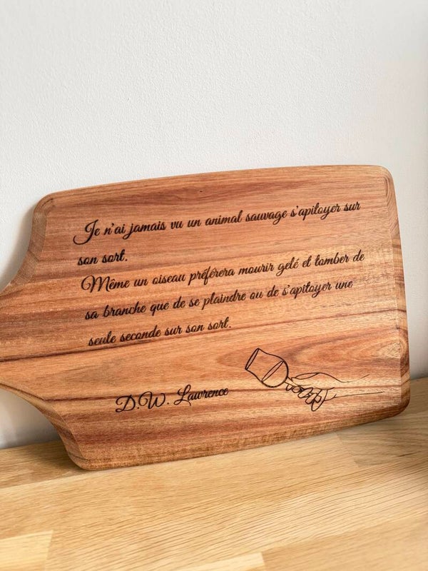 Faites plaisir avec une planche en bois d’acacia gravée sur mesure.