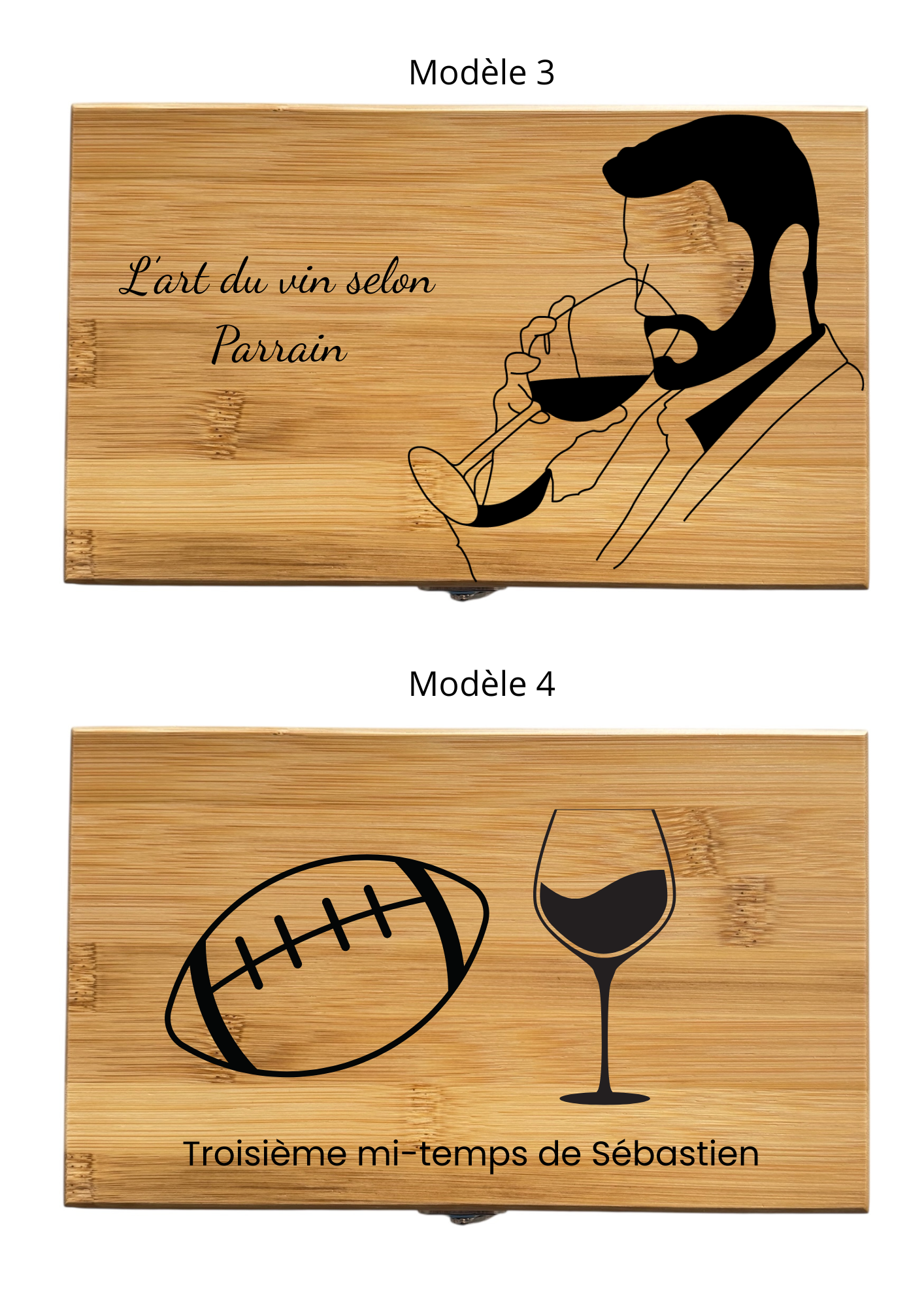 Coffret sommelier personnalisé en bambou 10 modèles au choix Gravure sur bois Cadeau pour amateur de vin