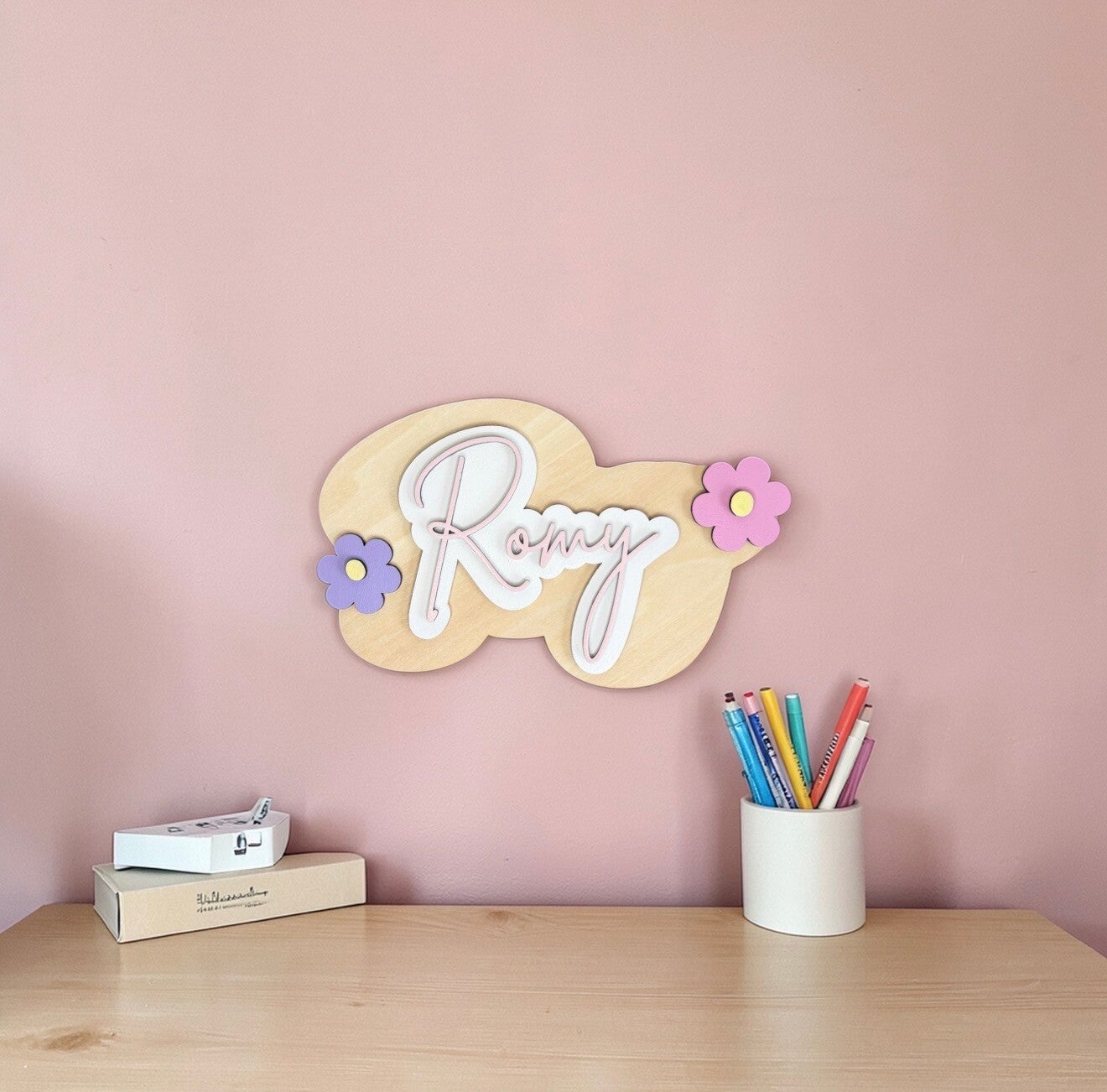 Avec ses formes délicates, ses fleurs colorées et son prénom en relief, cette création devient un véritable élément décoratif unique, pensé pour accompagner les plus beaux moments de l’enfance.