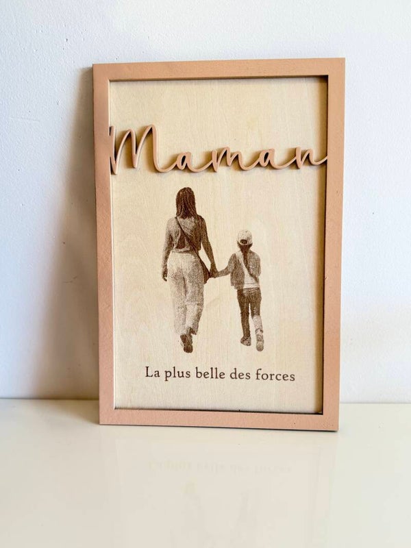 Cadre photo personnalisé en bois – Gravure à partir de votre photo – Cadeau Fête des Mères