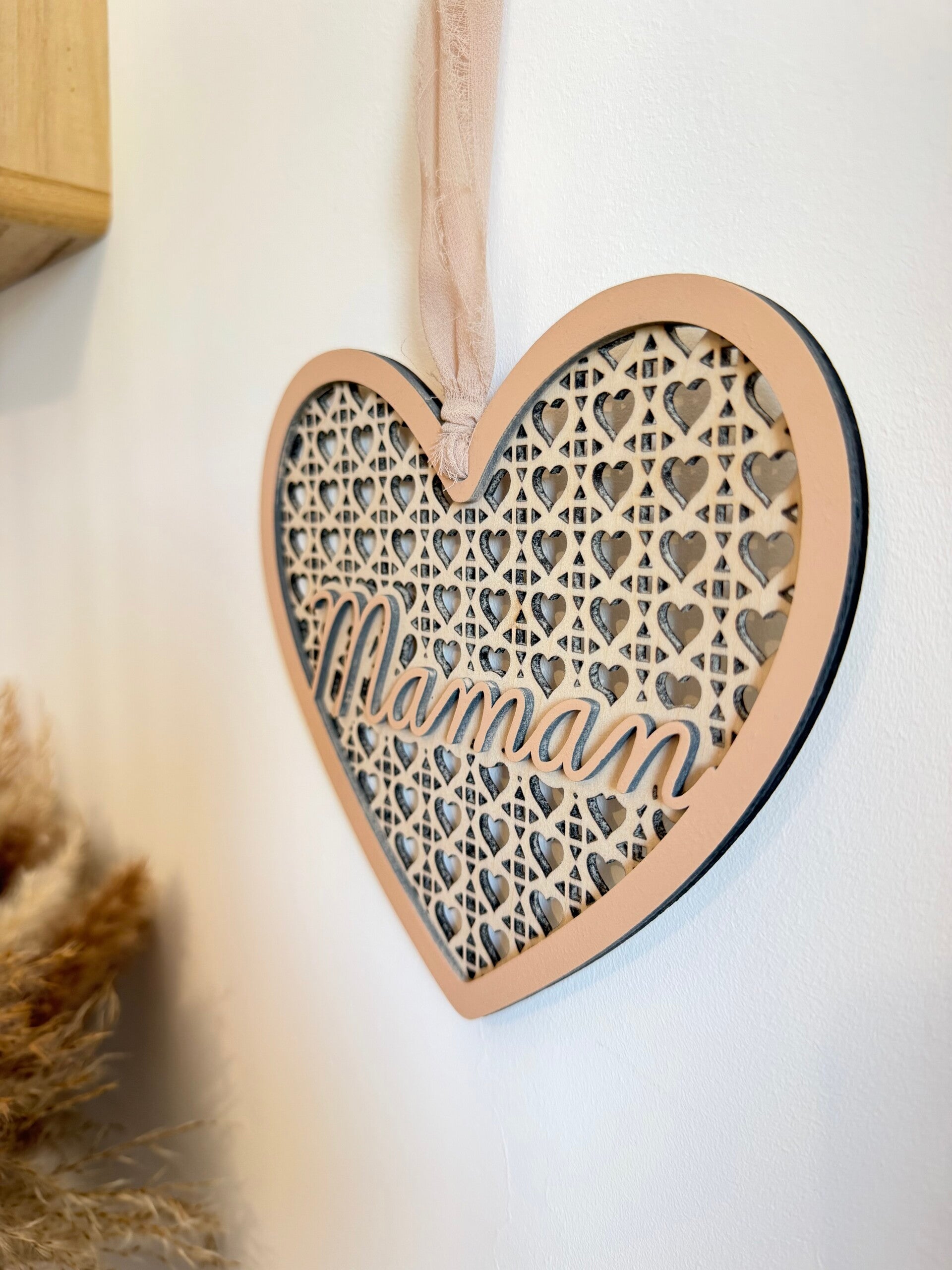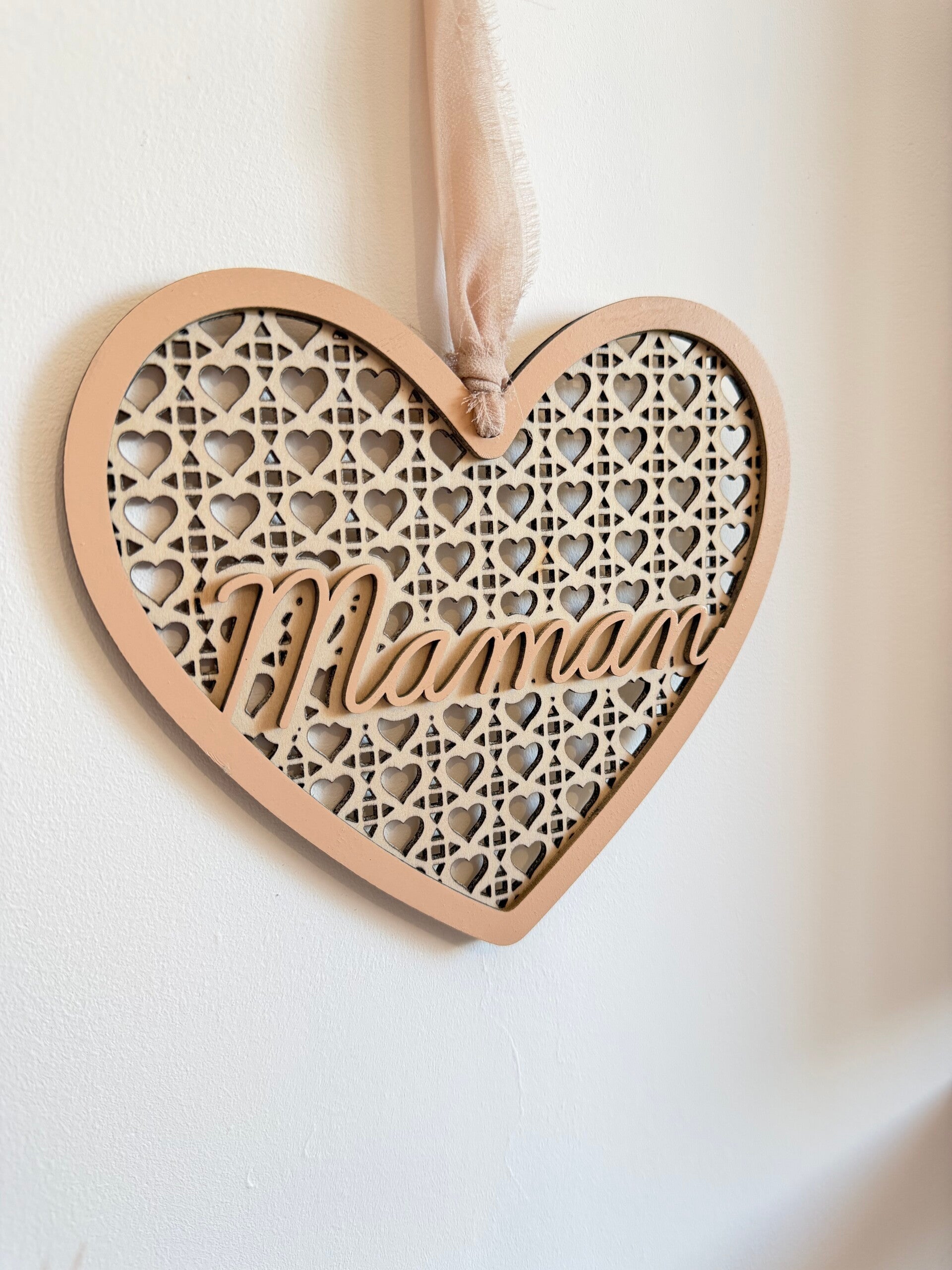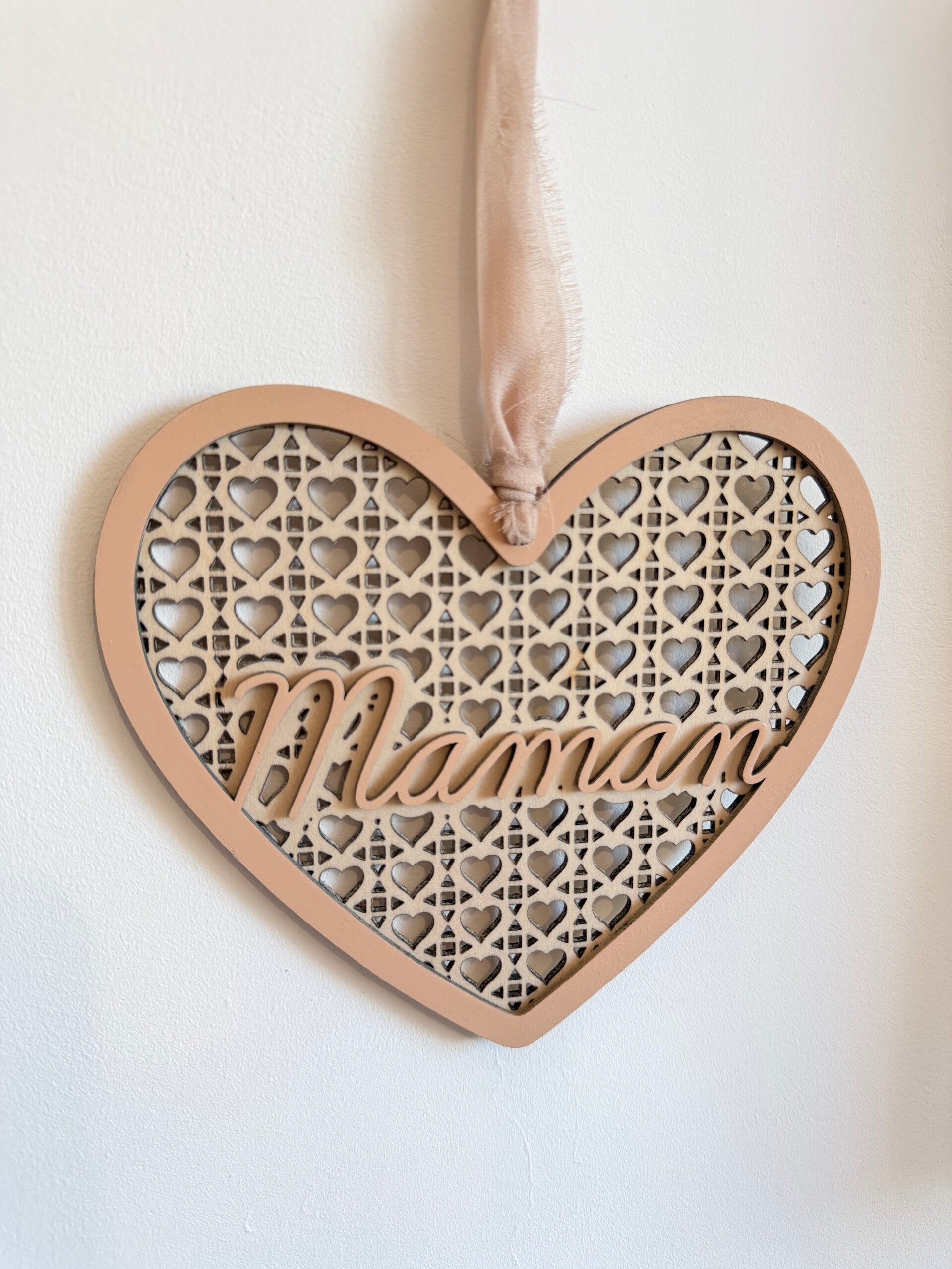 Cœur en bois personnalisé “Maman” – Décoration murale Fête des Mères